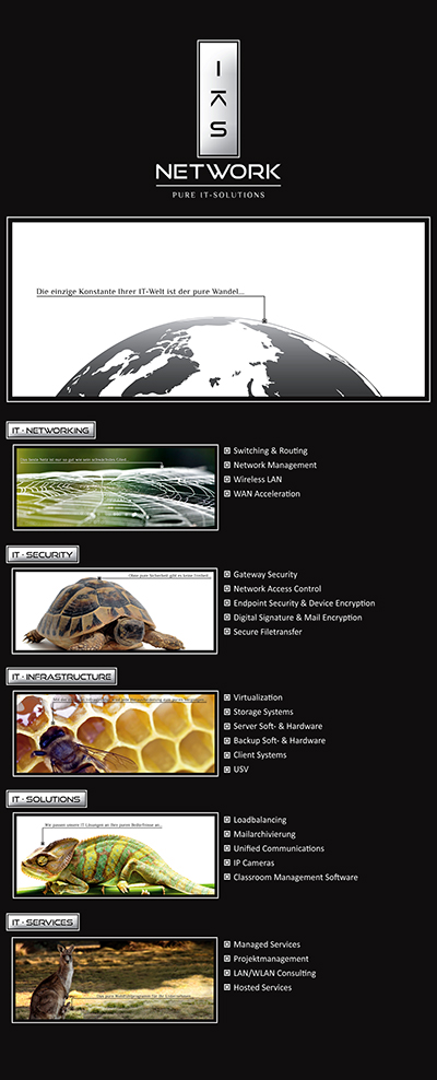 Immer wieder haben Sie uns, angefangen bei den Entwürfen für unser neues Firmenlogo bis hin zur Ausarbeitung unserer Ende 2015 gestarteten Aktion für den IKS WLAN Service, mit frischen und innovativen Ideen überrascht und begeistert. Ein Highlight Ihrer Tätigkeit war in 2016 die Erstellung des Layouts der Printmedien für unser 20-jähriges Firmenjubiläum. Das sehr kreative Konzept hat unsere Erwartungen in Sachen Design und Haptik übertroffen. Die Full-Service Beratung und Betreuung durch Zensys ist eine enorme Bereicherung für die IKS. Die durch Sie erarbeitete „IKS Tierwelt“ haben wir, wie auch unsere Kunden und Partner, ins Herz geschlossen und sie ist nicht mehr aus unserem Firmenauftritt wegzudenken.
