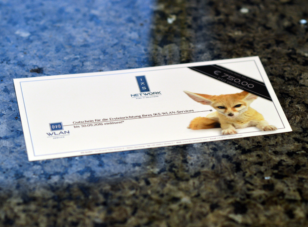 Um den neuen WLAN-Service der IKS GmbH zu bewerben, wurde von Zensys eine crossmediale Werbekampagne ausgearbeitet. Mit der subtilen Bildsprache und einer zielgruppengenauen Ansprache konnte ein außergewöhnlich gutes Ergebnis erzielt werden. Auch bei der Kampagne ist die Durchgängigkeit des Corporate Designs ausschlaggebend für eine Wiedererkennung und ein Garant für einen großen Erfolg.