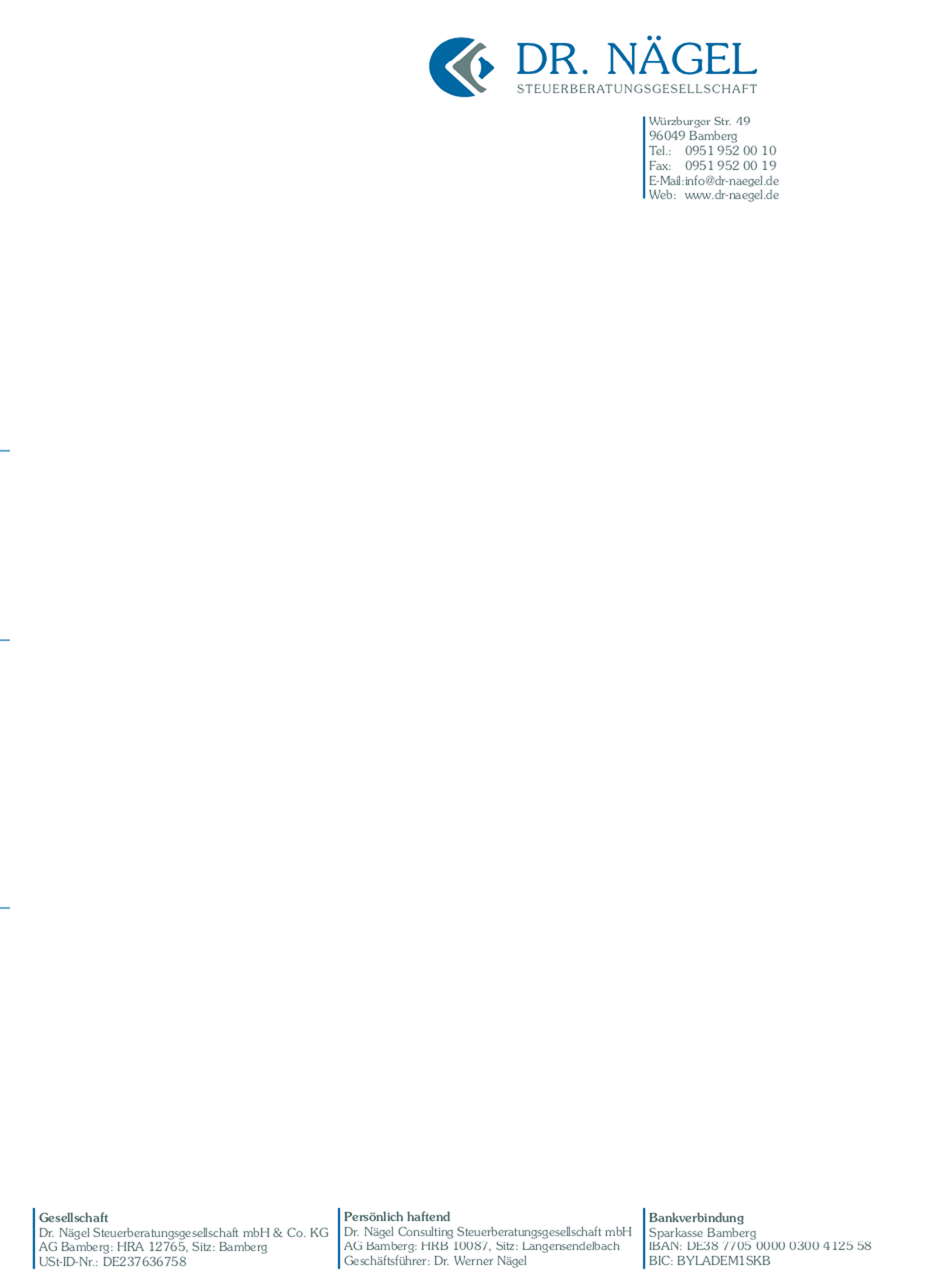Die Steuerberatung Dr. Nägel mit Hauptsitz in Bamberg und Niederlassung in Langensendelbach ist seit vielen Jahren eine etablierte und professionelle Steuerberatungsgesellschaft für Unternehmen und Privatpersonen.