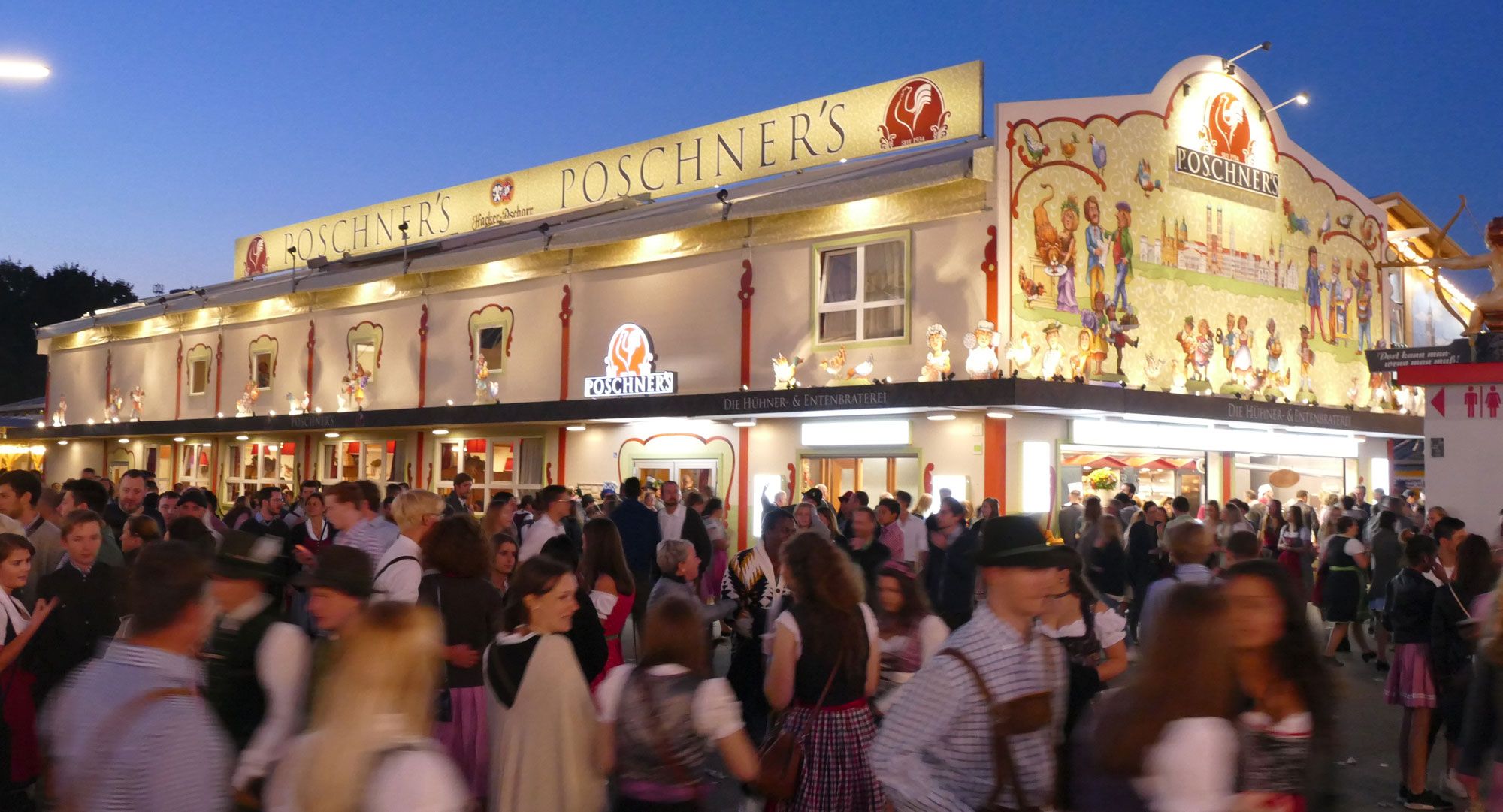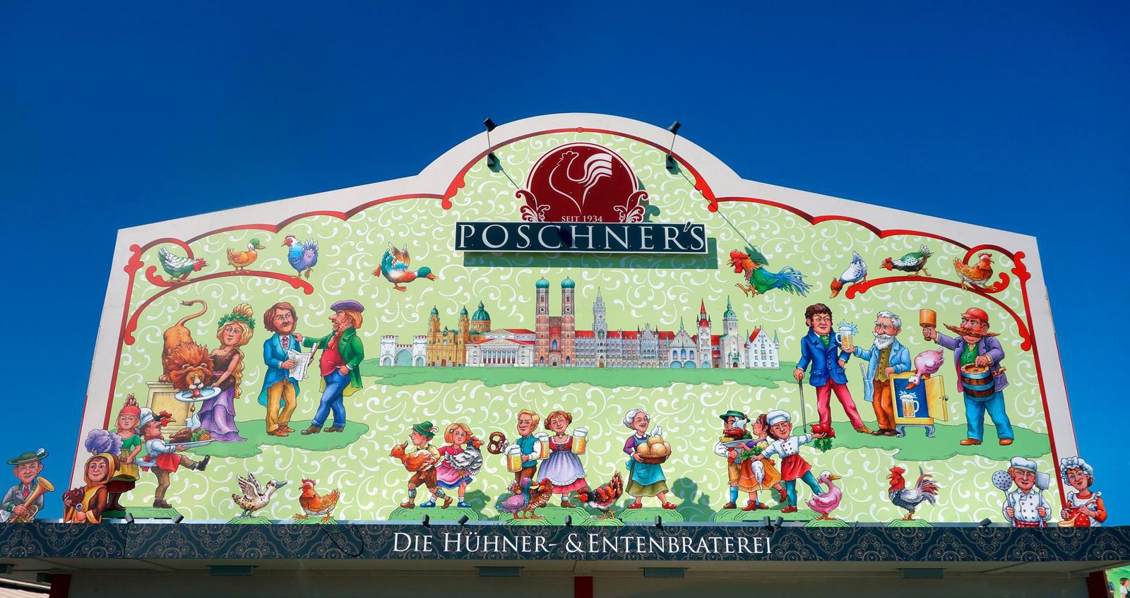 Poschner´s - Hühner-und Entenbraterei ist eines der traditionellen Familienunternehmen auf dem Oktoberfest in München. Seit 1934 nimmt die Familie Luff mit nahezu unverändertem Design am größten Volksfest der Welt teil.